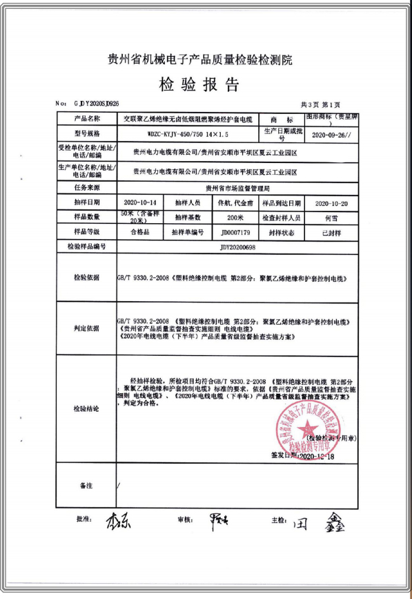 下一篇:鋁芯交聯(lián)聚乙烯絕緣架空電纜 檢驗(yàn)報(bào)告