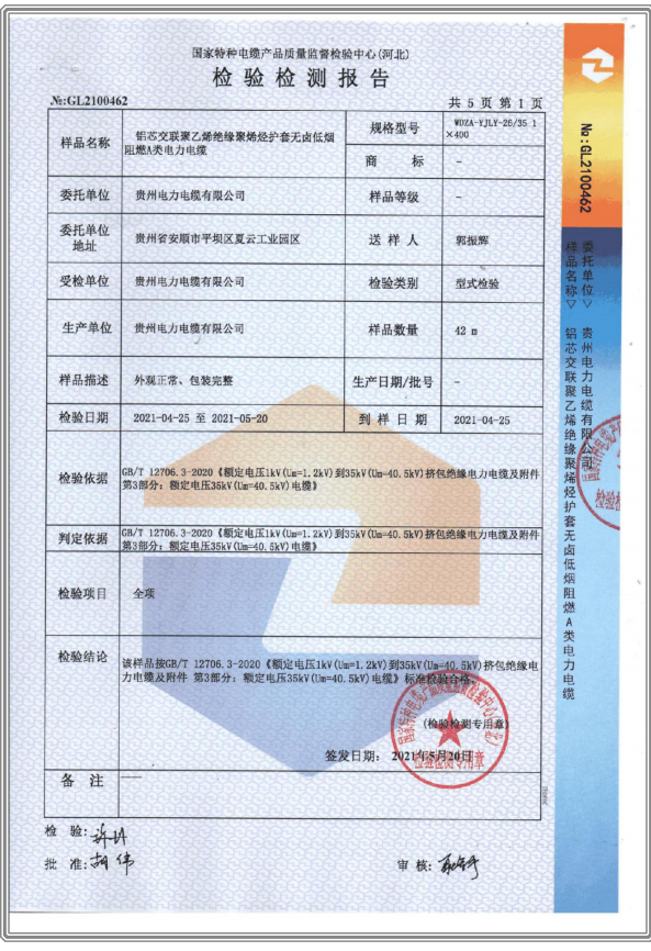 鋁芯交聯(lián)聚乙烯絕緣聚烯烴護(hù)套無(wú)鹵低煙阻燃A類(lèi)電力電纜-檢驗(yàn)檢測(cè)報(bào)告