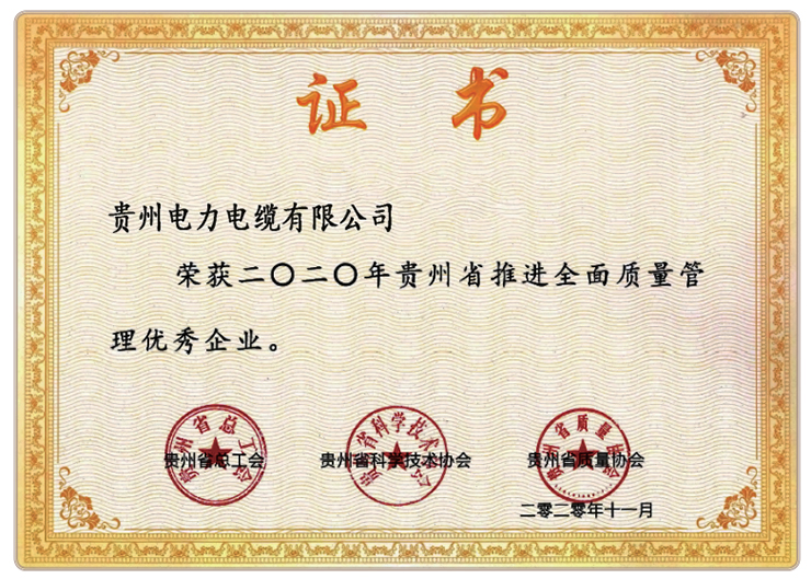 • 2020年貴州省推進全面質(zhì)量管理優(yōu)秀企業(yè)